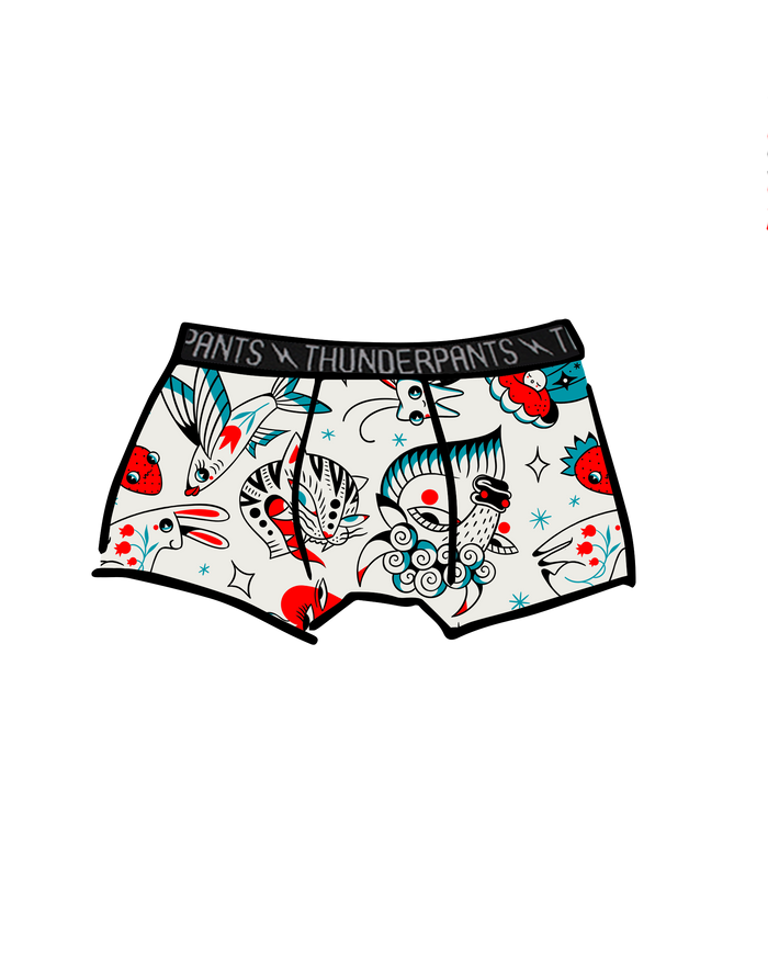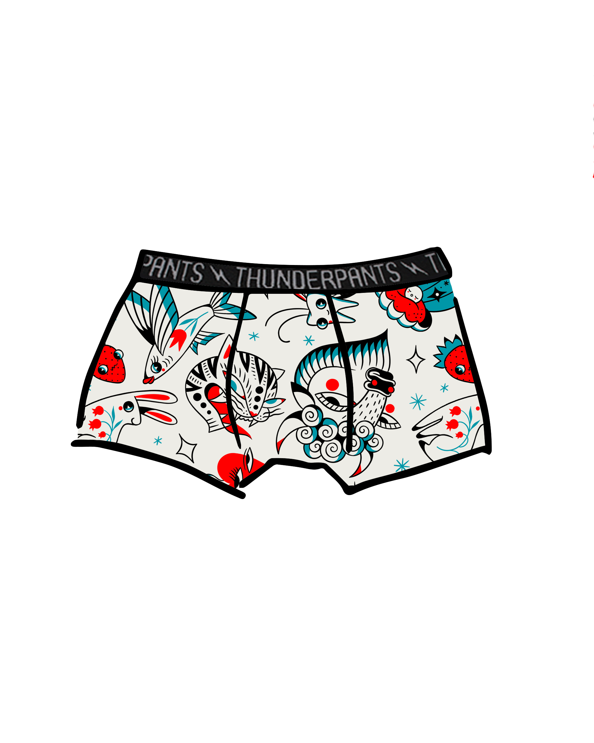 This ink-redible print is illustrated by local tattoo artist Connie Gabbert. Her work is a perfect mix of whimsy and traditional style, and every one of these adorable characters pops to life. We wanted to cover our whole bodies with her tattoos, so we thought, what’s better than covering thundies with them? Now you can be inked up whenever you want!