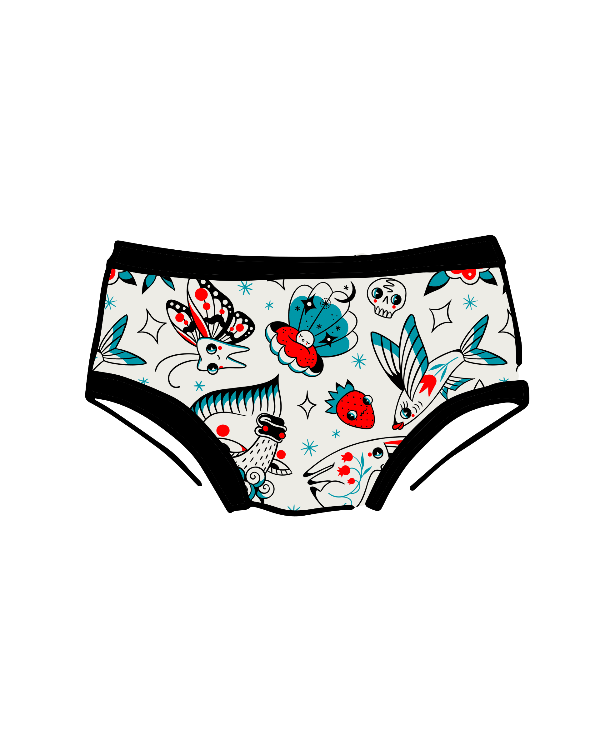 Drawing of Thunderpants Kid's Original style underwear in Inked Up print.