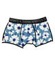 Drawing of Thunderpants Boxer Brief style underwear in Moody Blooms - white and blue flowers with blue background.