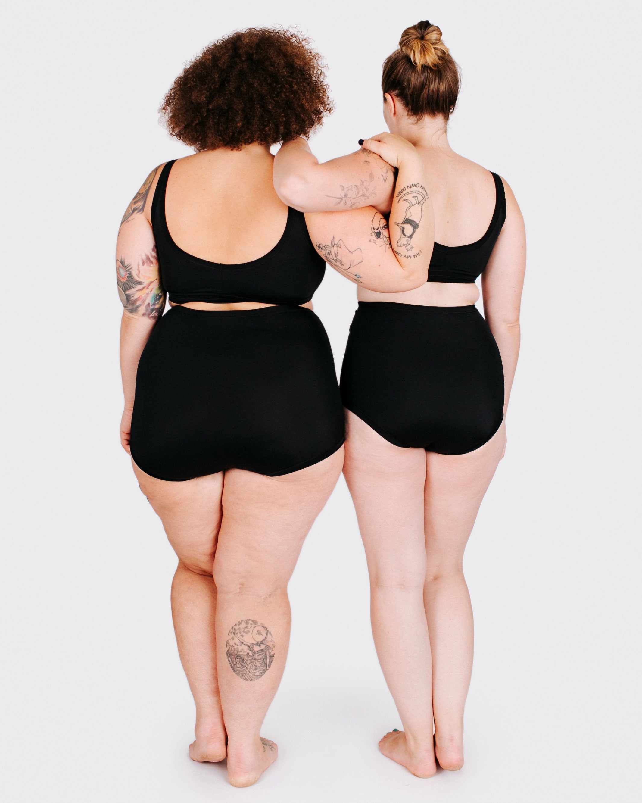 Our Sky Rise Swimwear Bottoms are a high waisted cut. They will go all the way to the natural waist, much like our Sky Rise style Thundies, with the same no-wedgies fit around the bum.