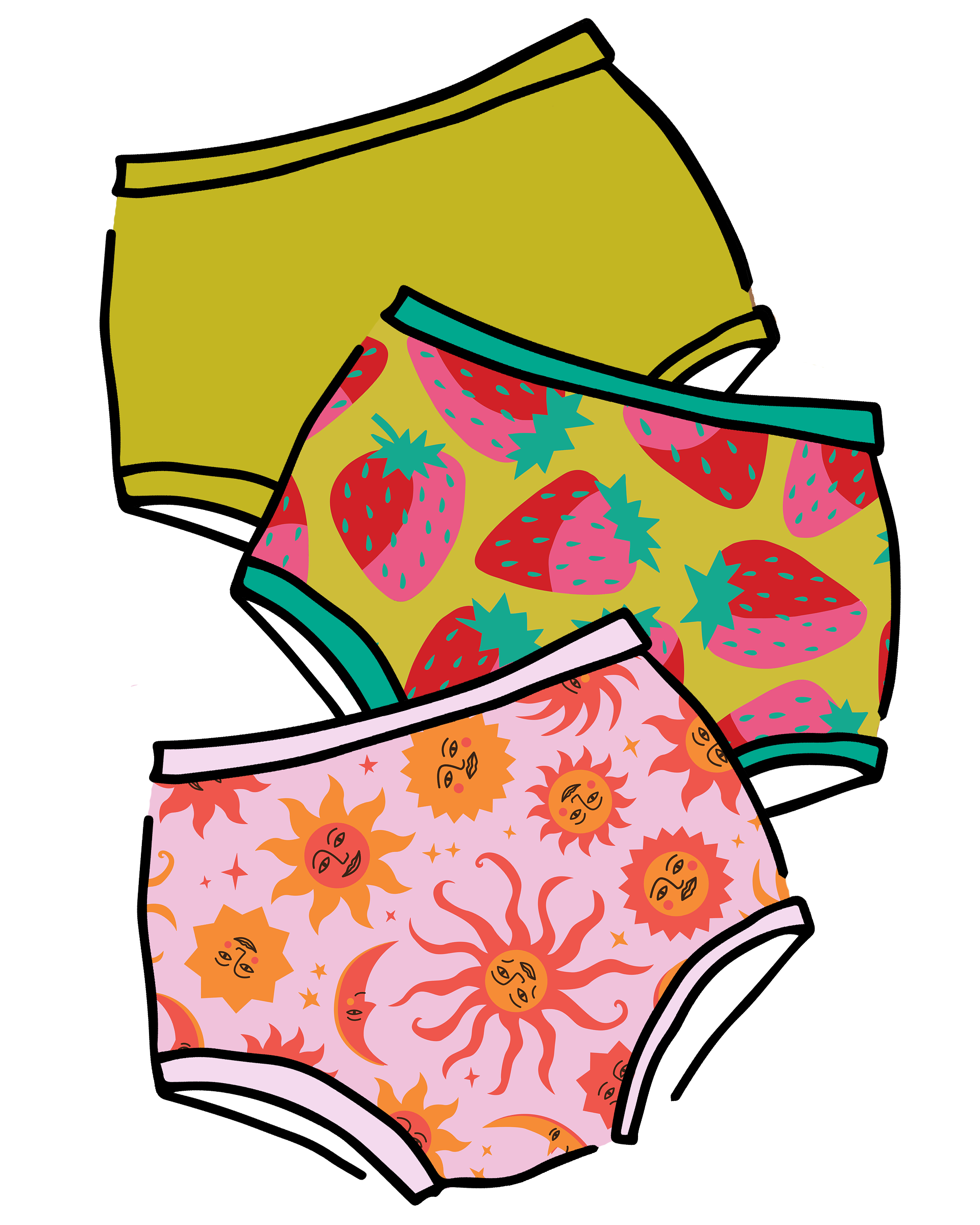 We can't make the sunshine come out, but we can put together a three pack of our cheeriest prints! This three pack is made up of Luna y Sol, Strictly Strawberry, and Star Fruit.