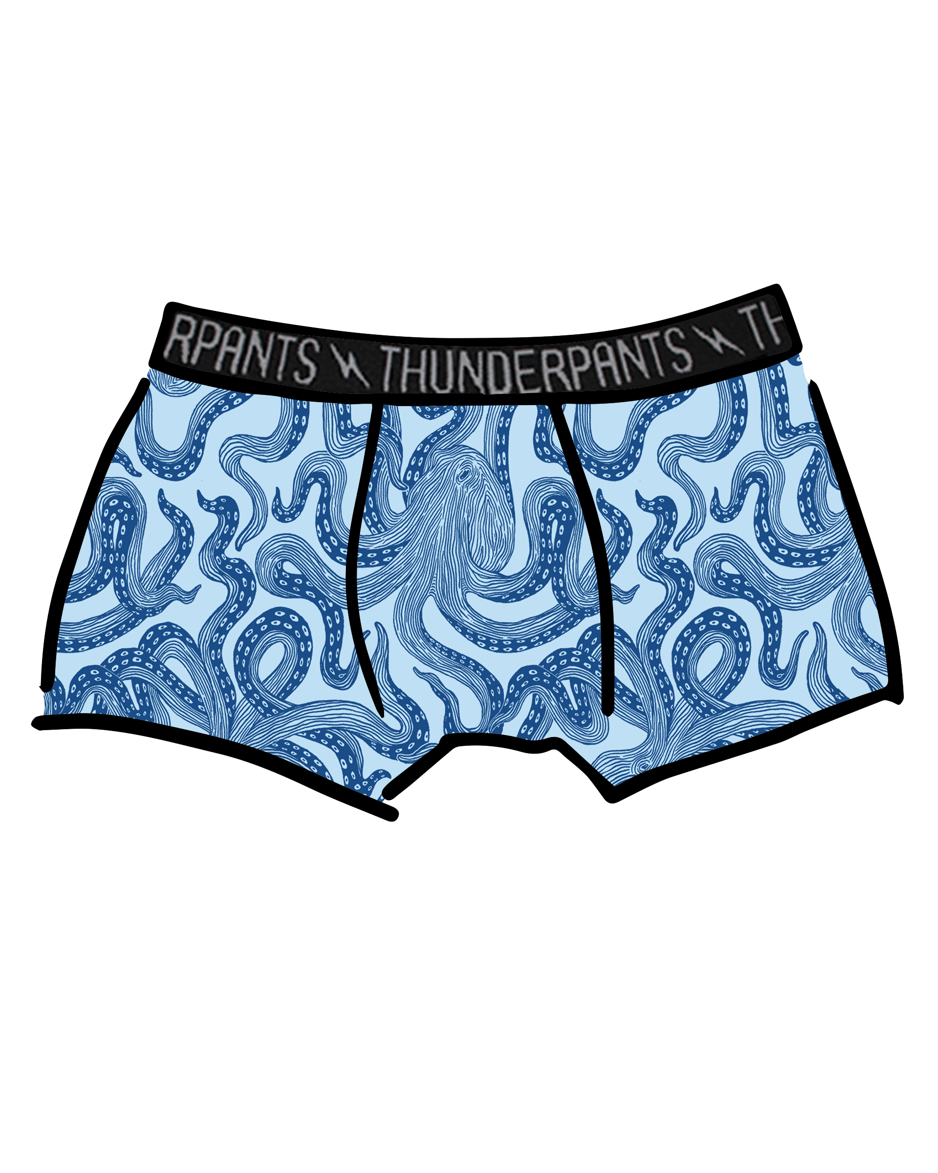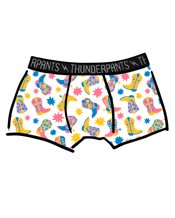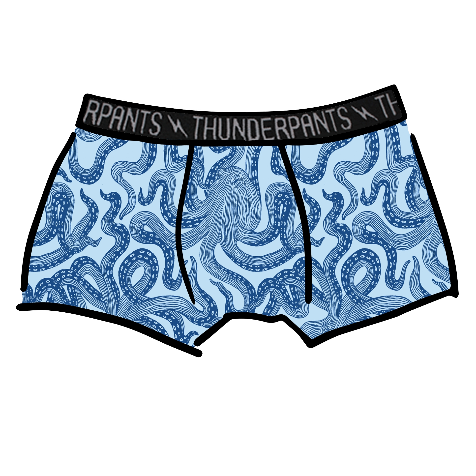 Drawing of Thunderpants Boxer Brief in Holly Holiday handprint.