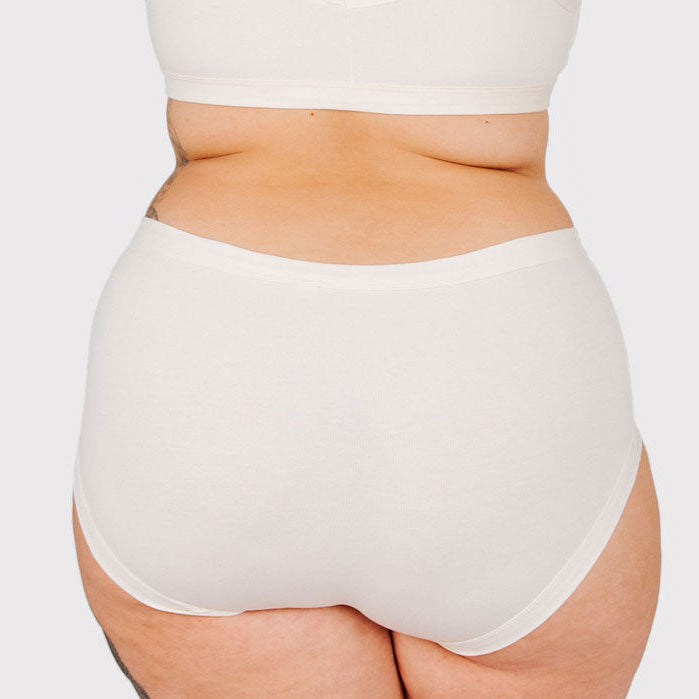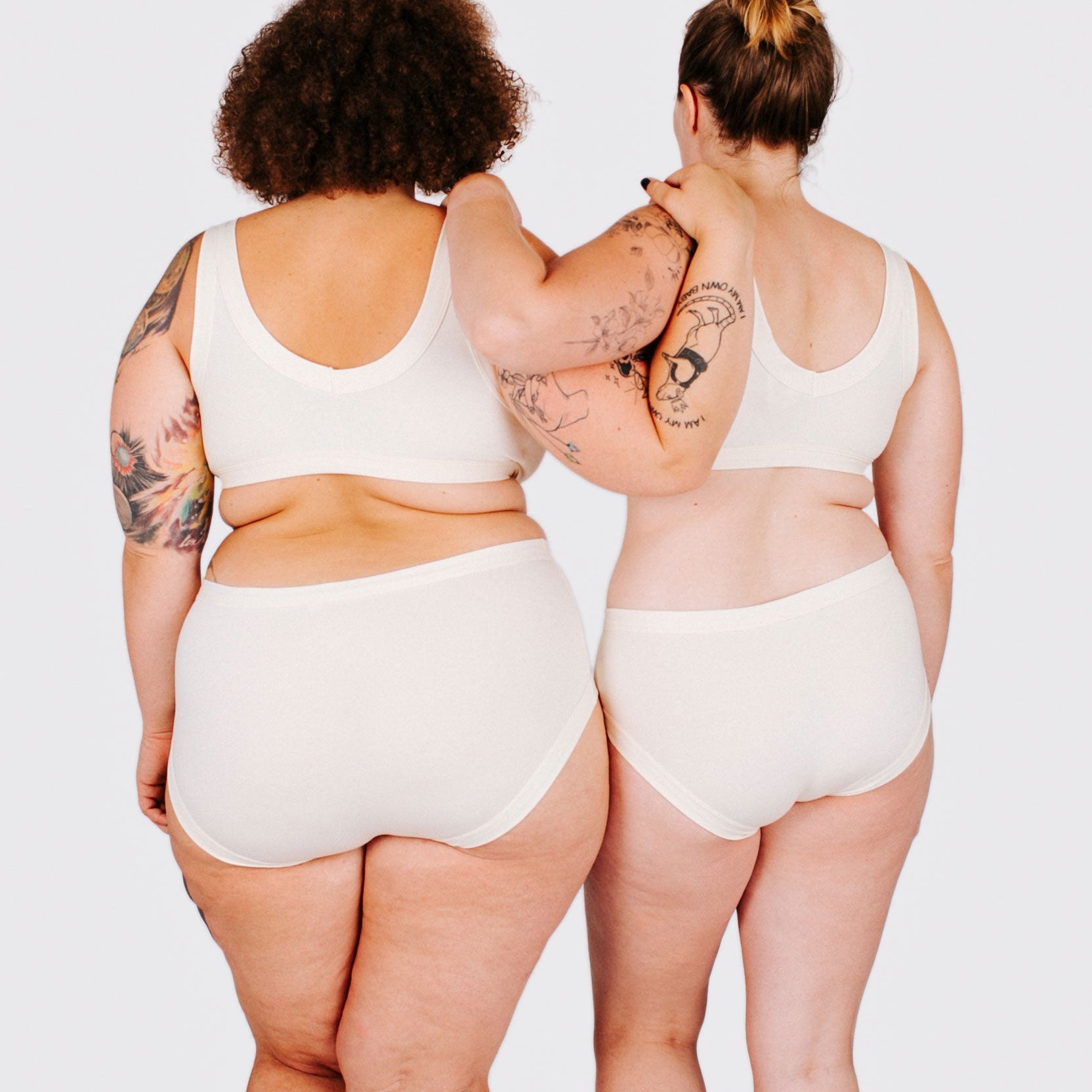 - Same soft organic cotton blend is used to cut our binding into wide strips instead of using elastic so there is never any irritating elastic against your skin