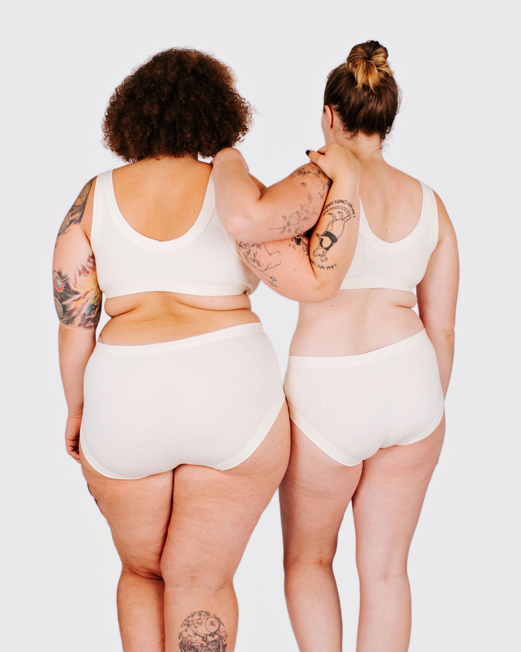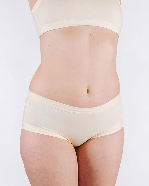 - Same soft organic cotton blend is used to cut our binding into wide strips instead of using elastic so there is never any irritating elastic against your skin