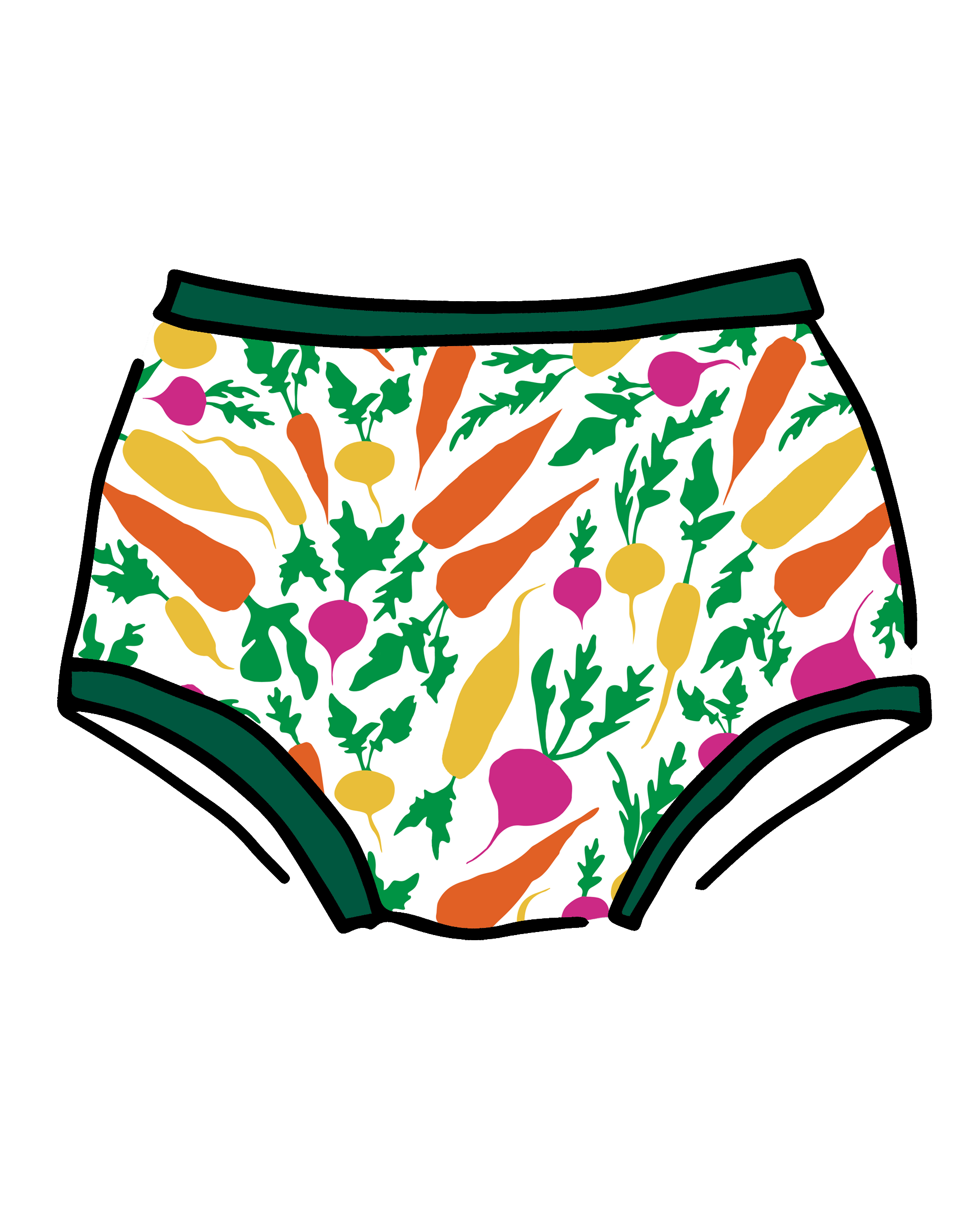 - Same soft organic cotton blend is used to cut our binding into wide strips instead of using elastic so there is never any irritating elastic against your skin
