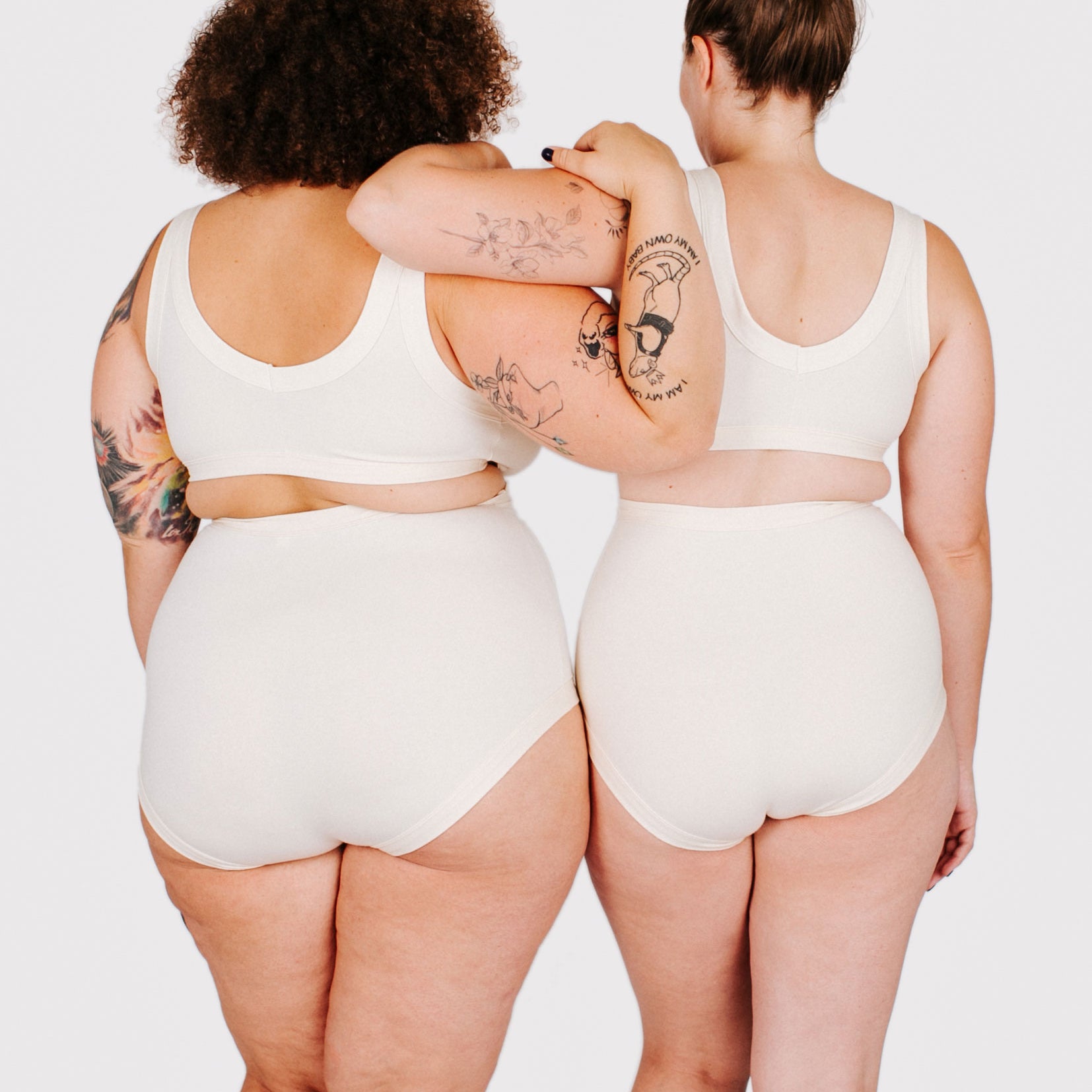 - Same soft organic cotton blend is used to cut our binding into wide strips instead of using elastic so there is never any irritating elastic against your skin