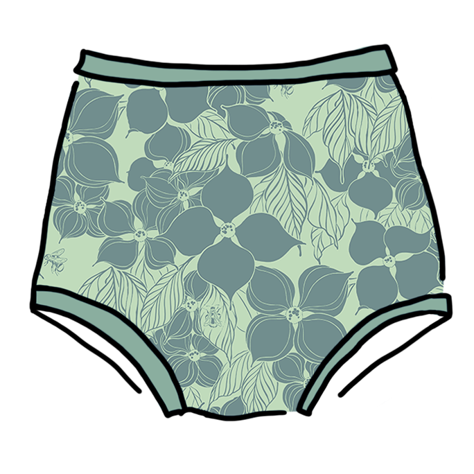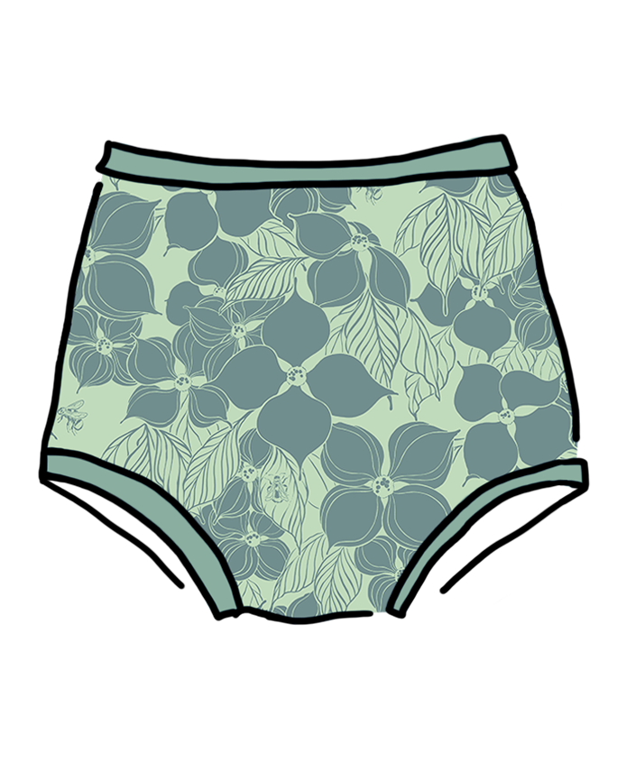 Drawing of Swimwear Sky Rise Panel Bottom in lavender and lichen green.