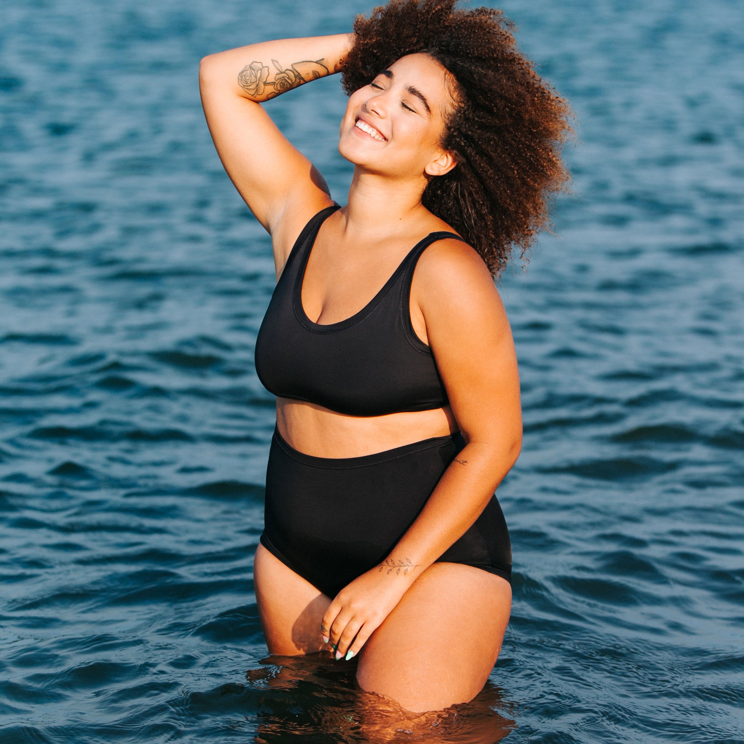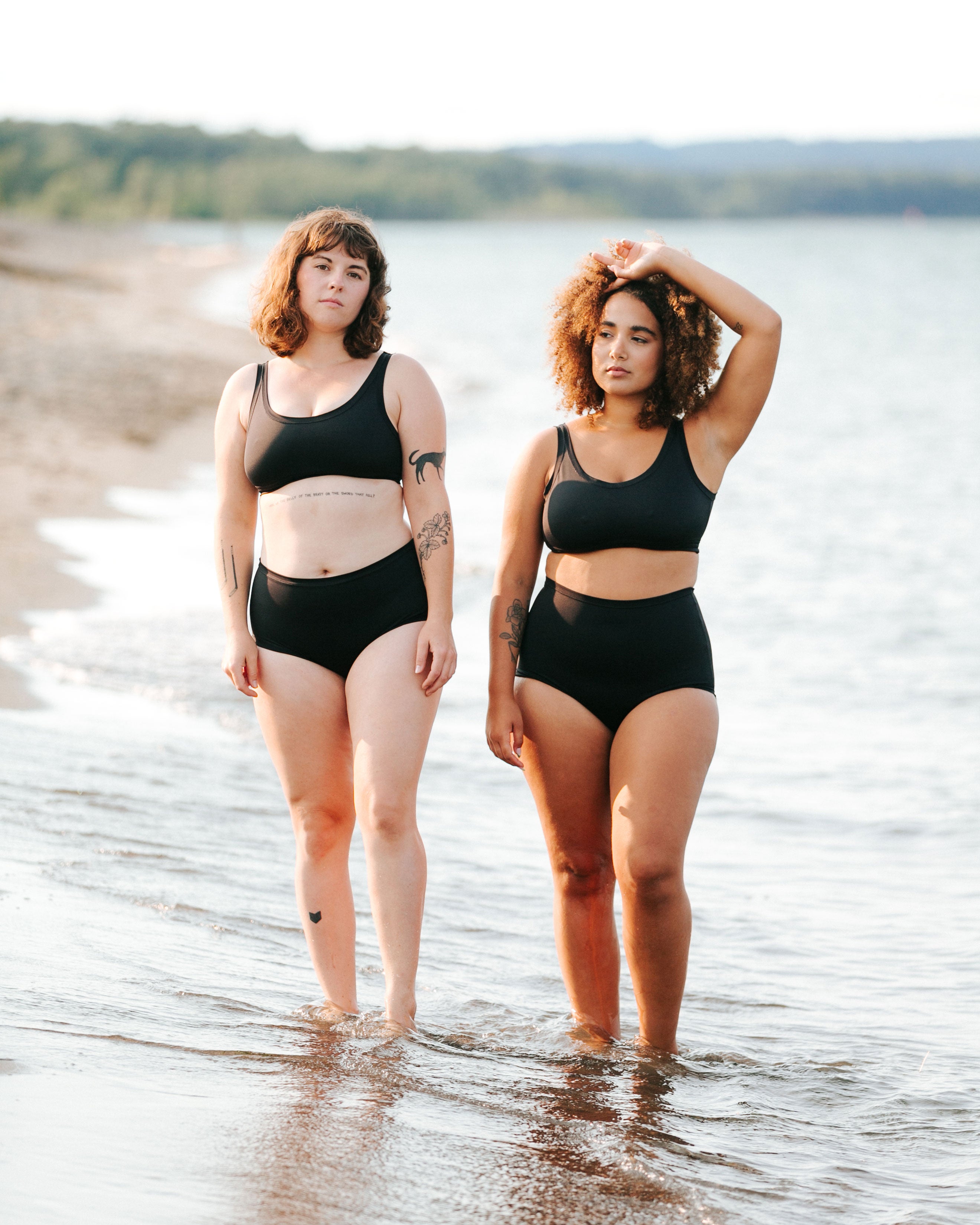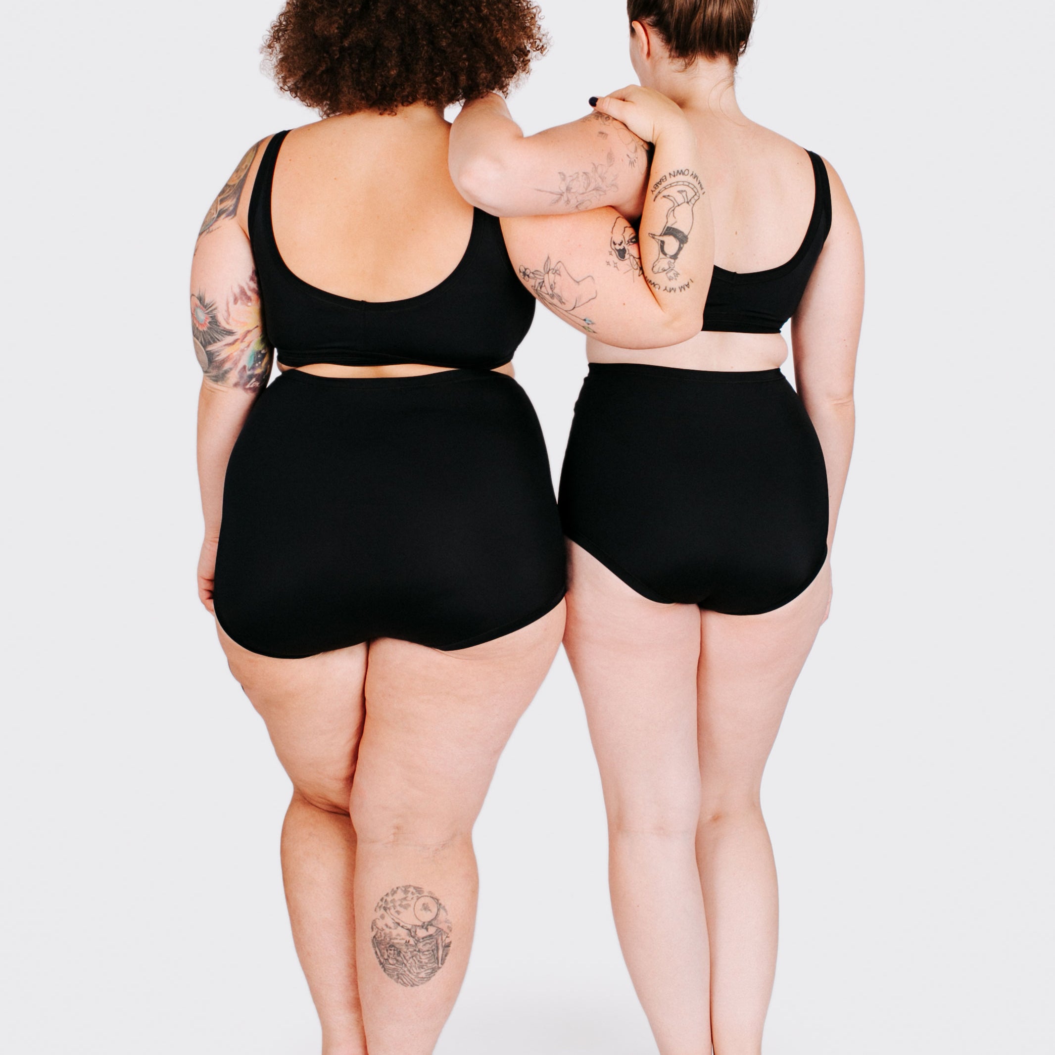 Drawing of Marina Blue Swimwear in Sky Rise style.