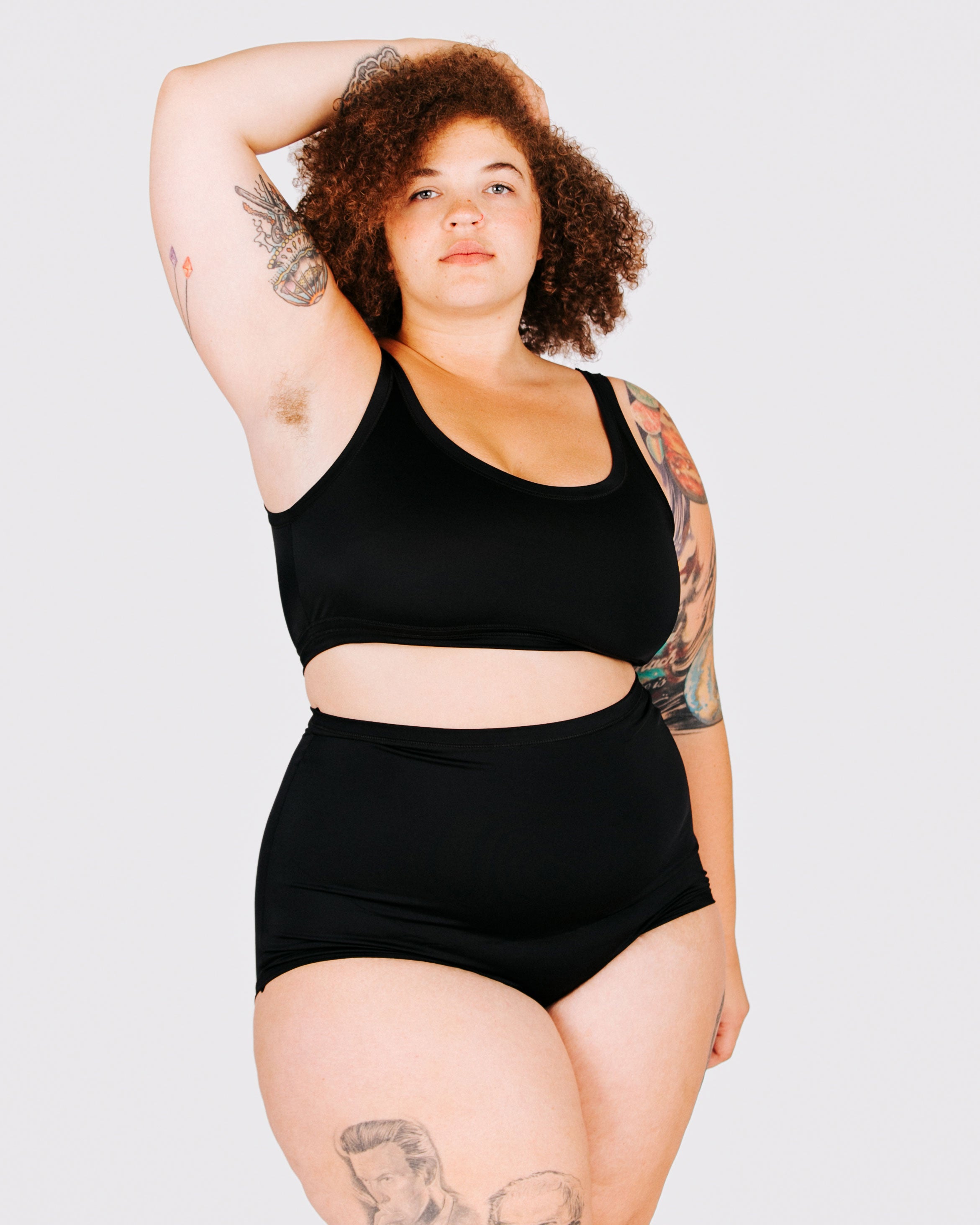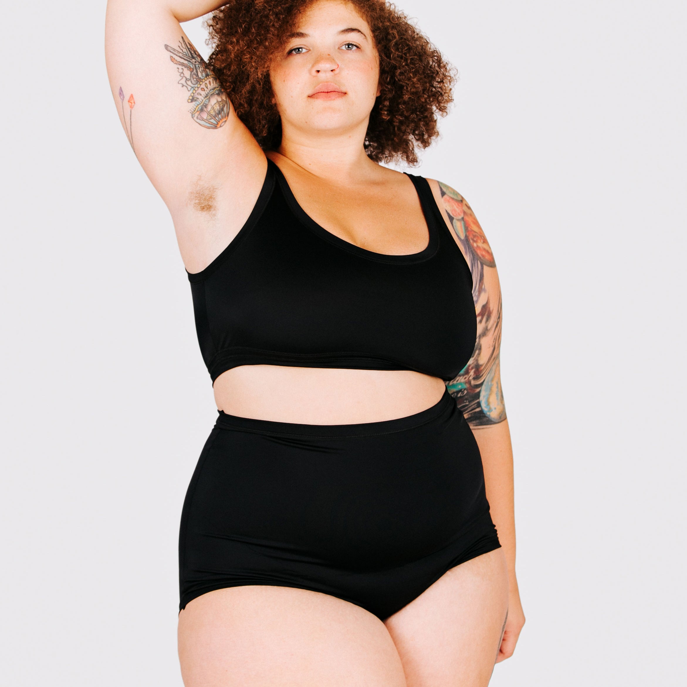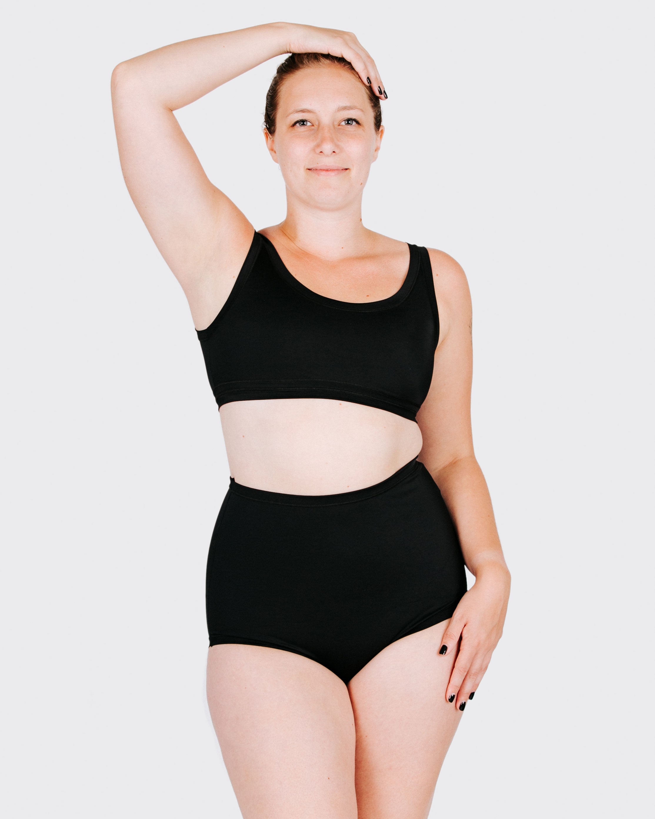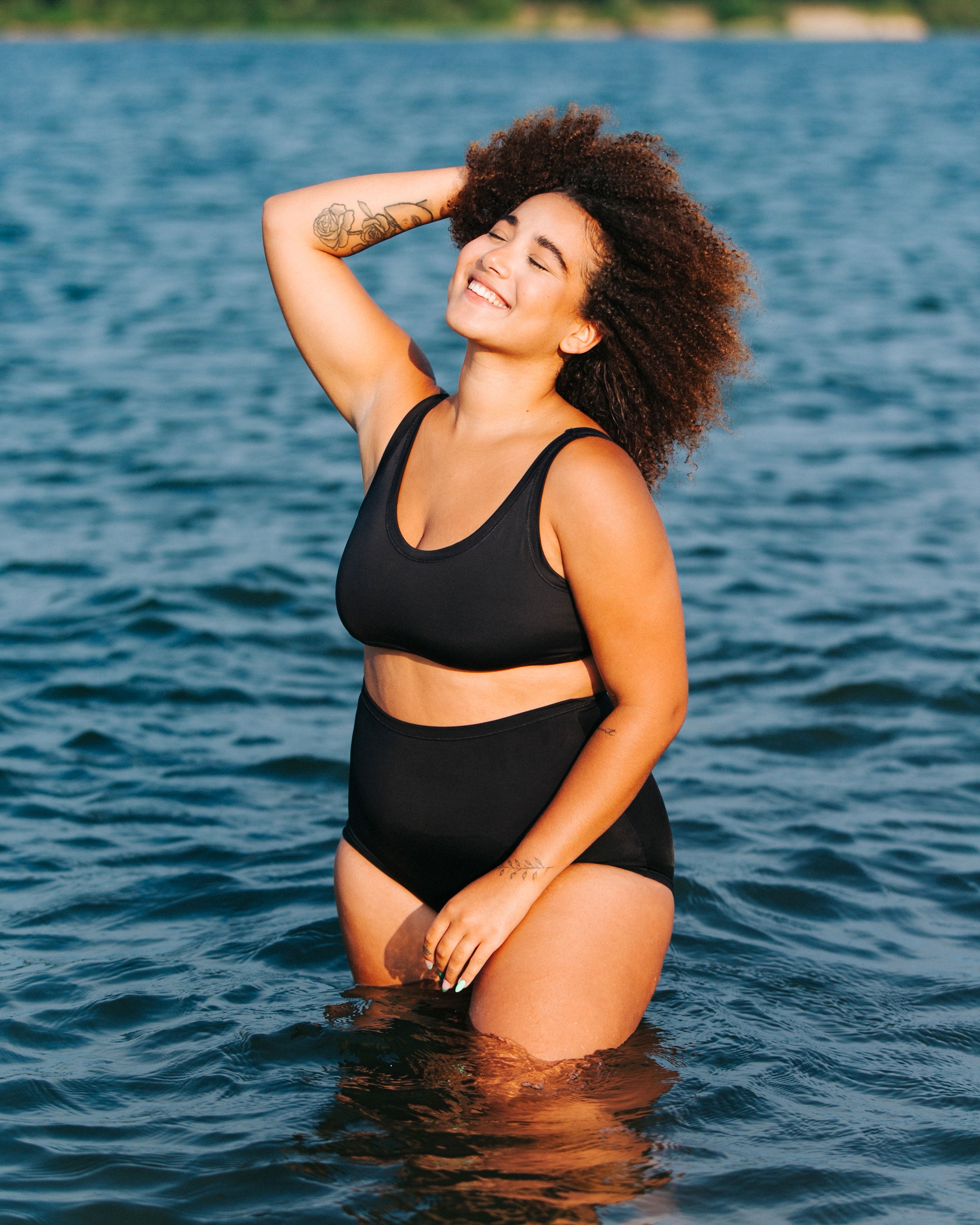 Drawing of Marina Blue Swimwear in Sky Rise style.