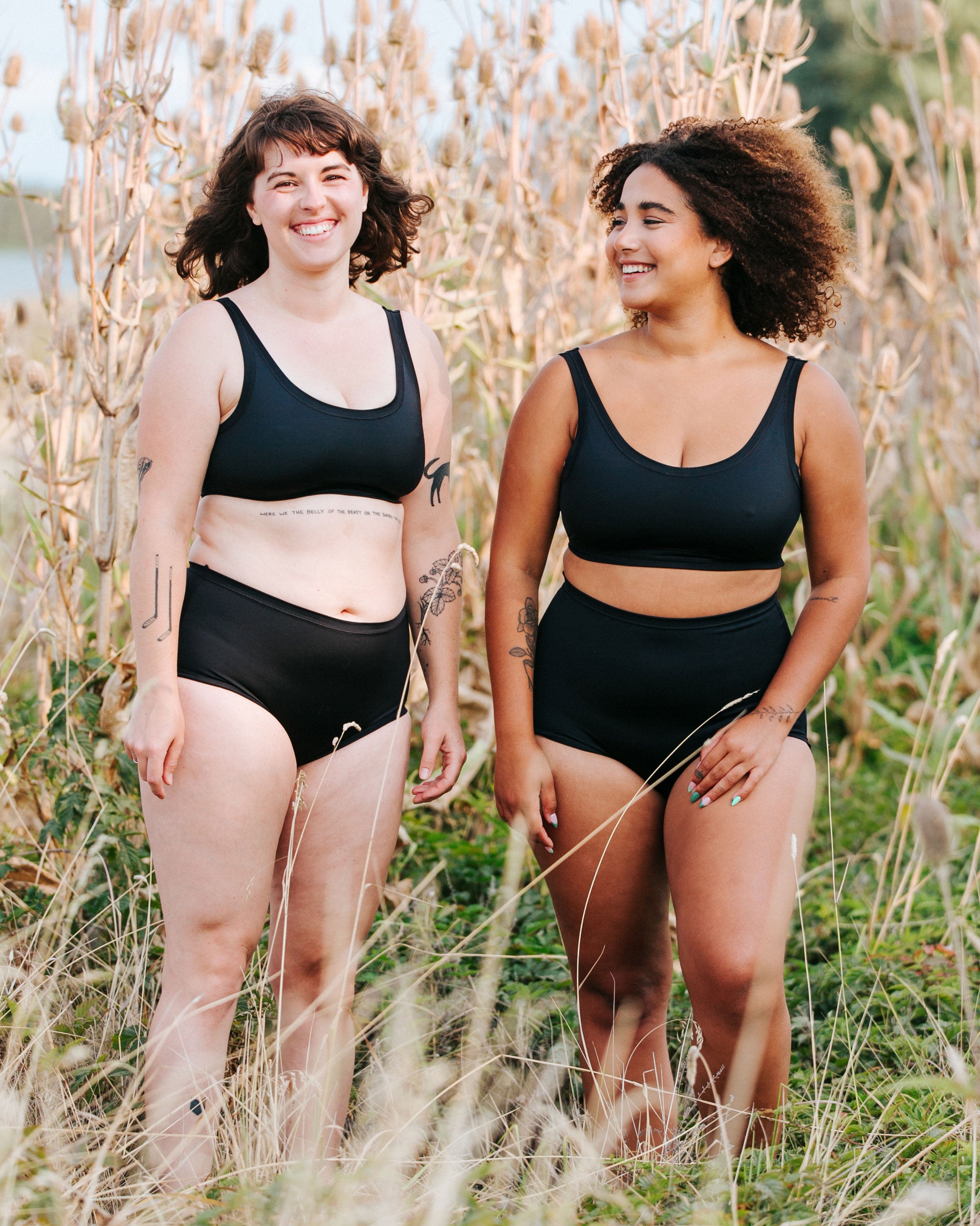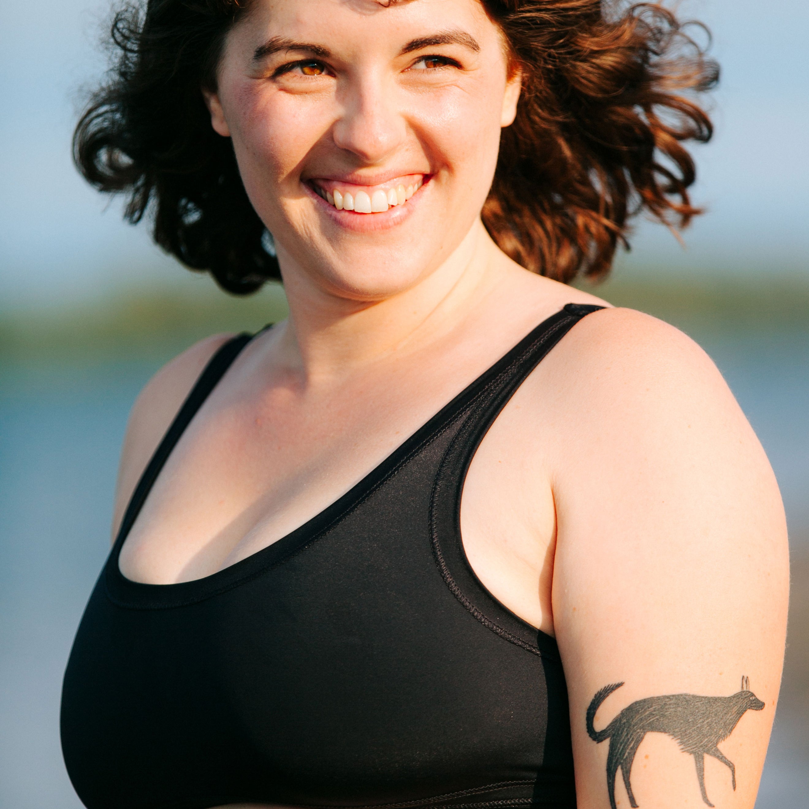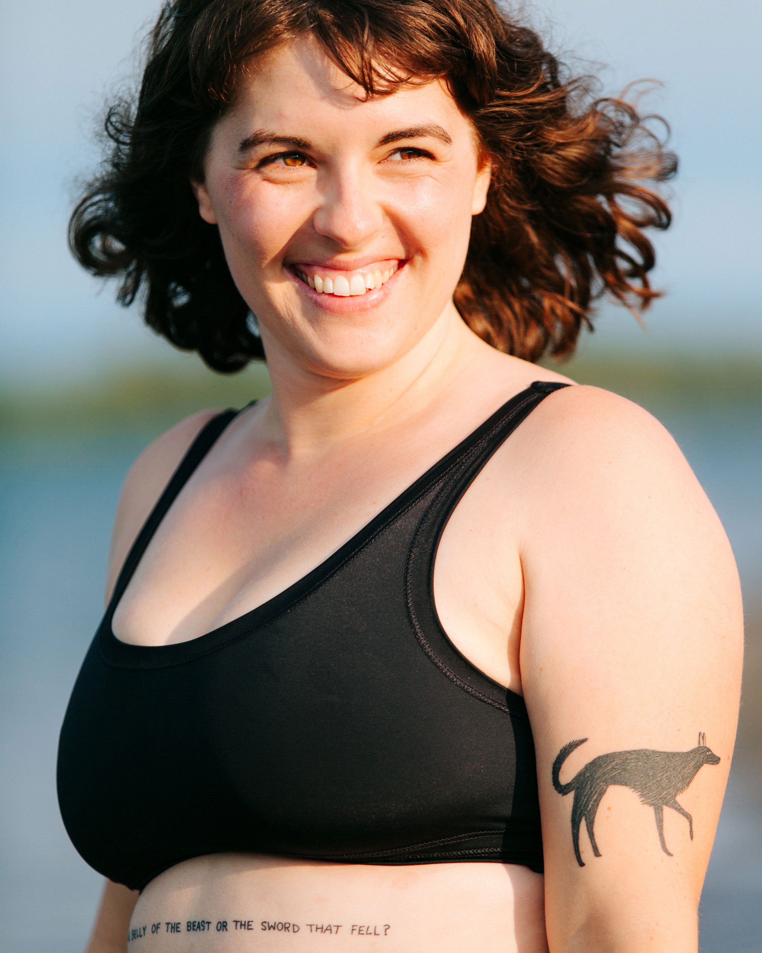 Drawing of Thunderpants Swim Panel Top in lavender and lichen green.
