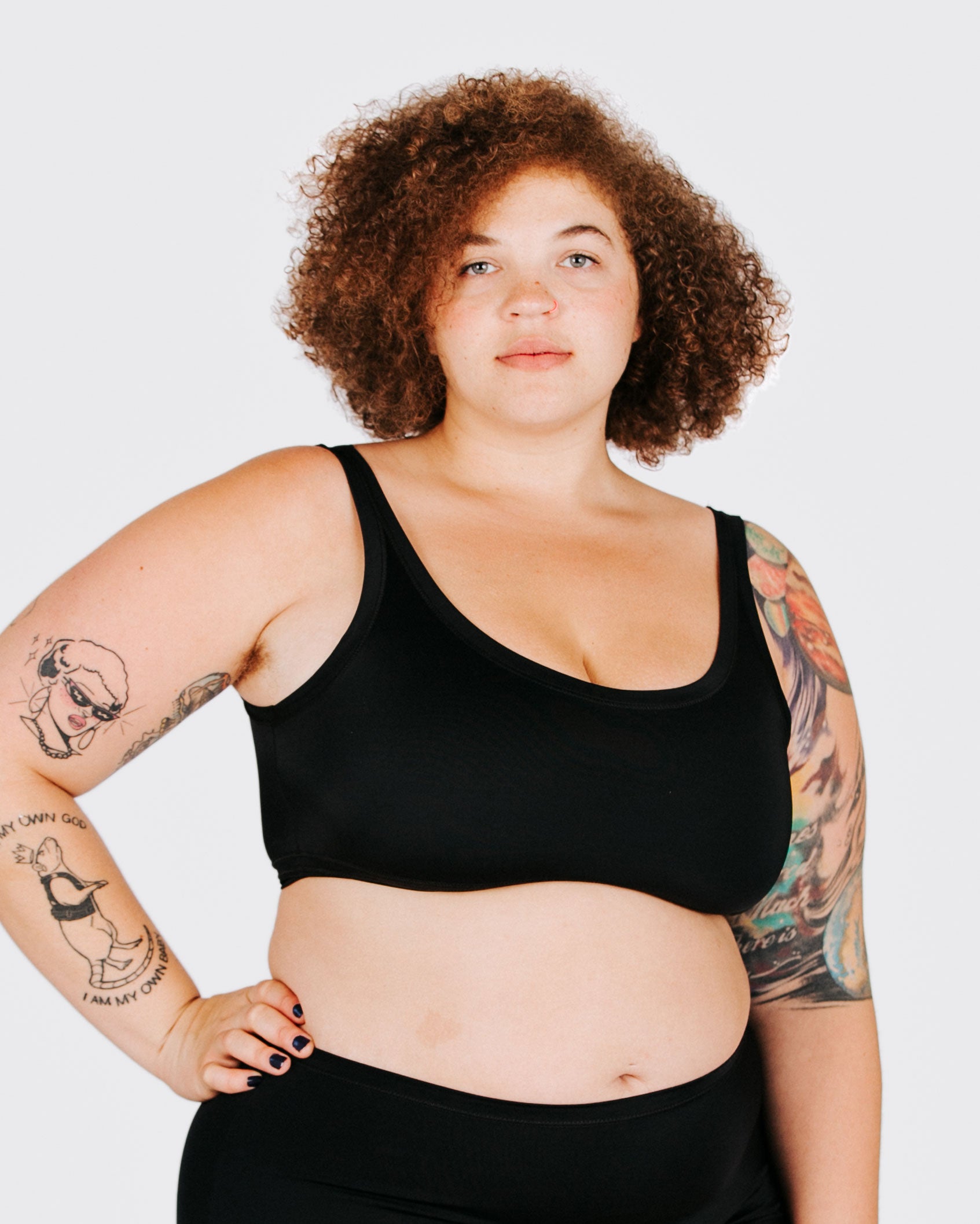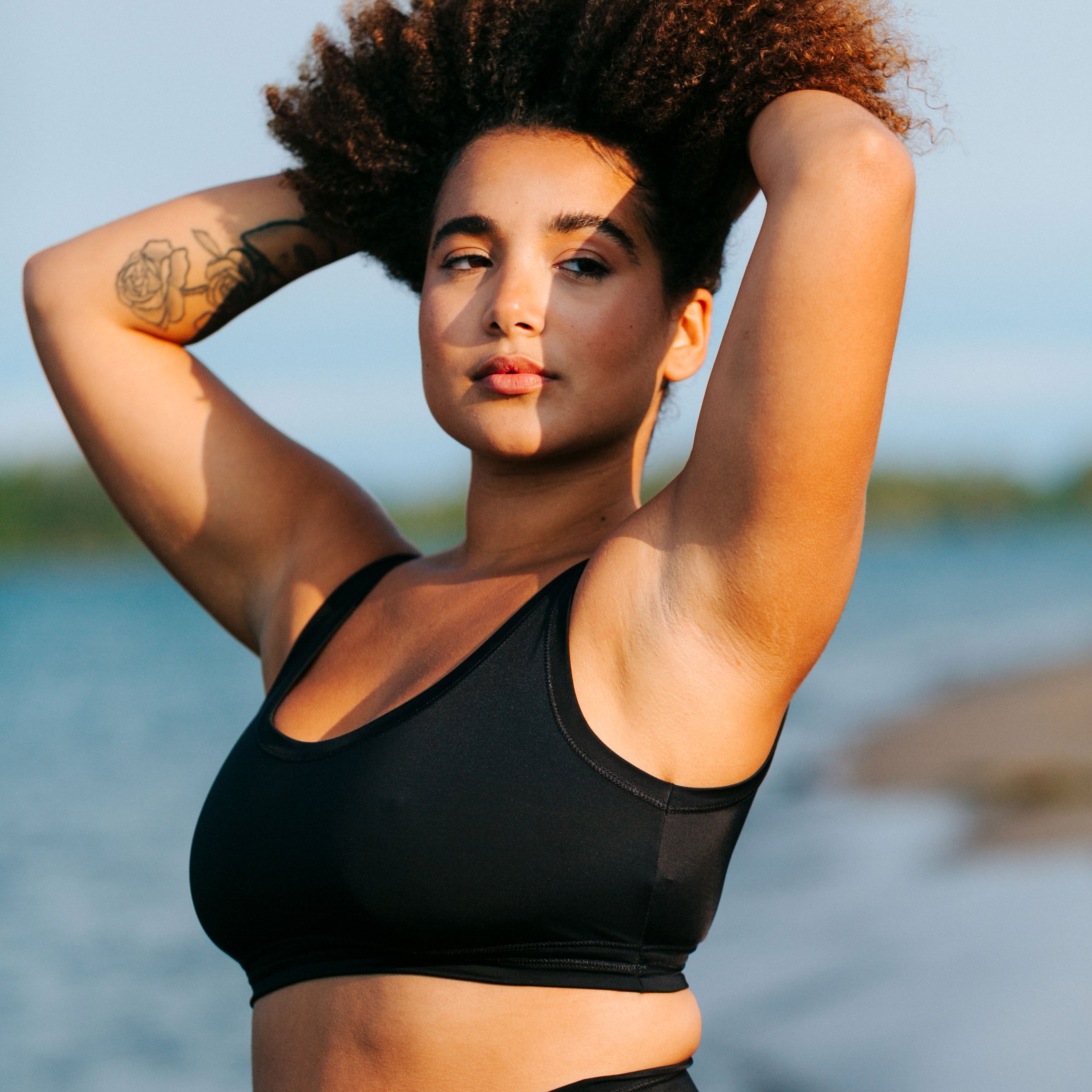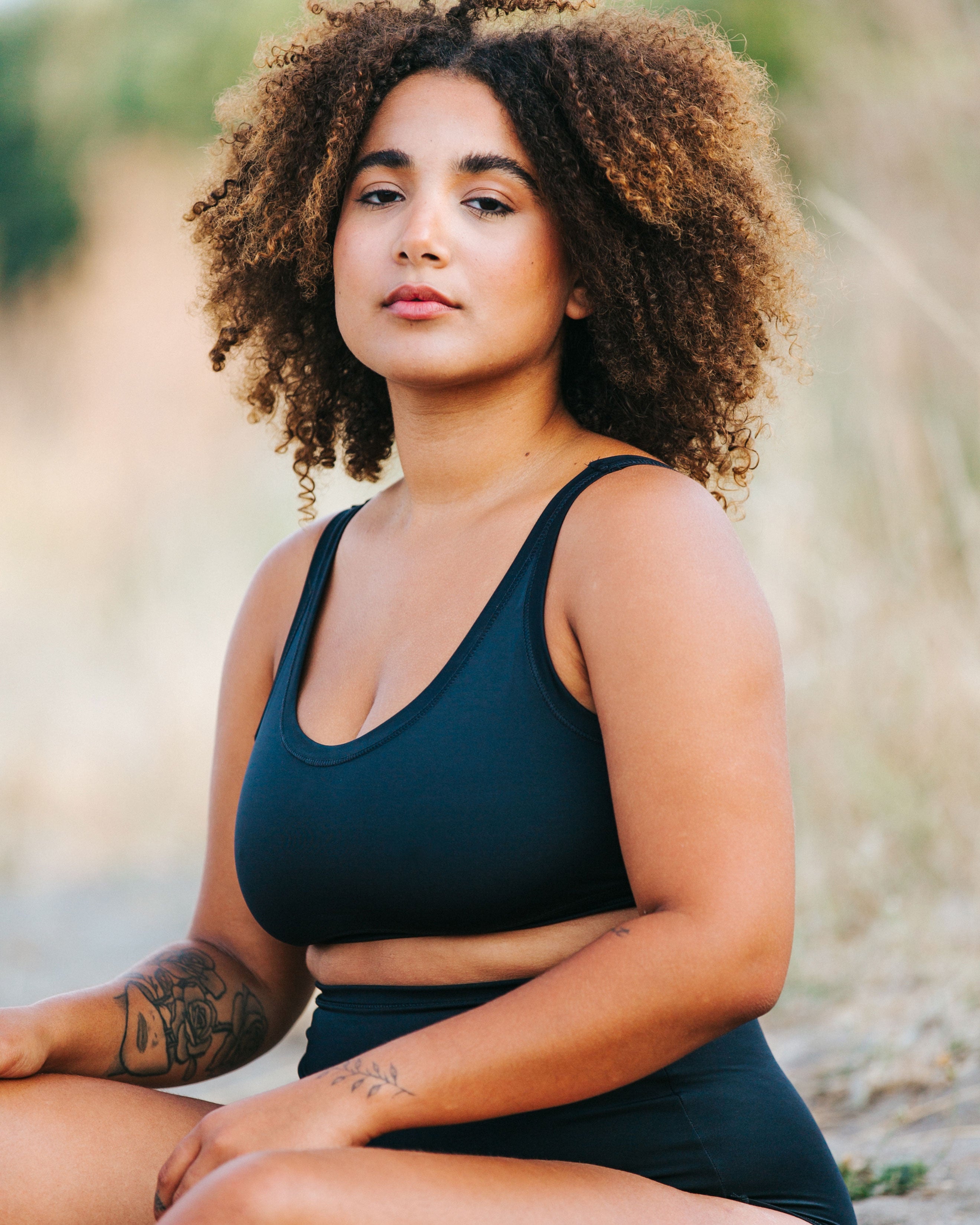 Drawing of Thunderpants Swim Panel Top in lavender and lichen green.