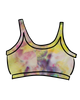 Drawing of Thunderpants Longline Bra in Citrus Blossom Dye - hand dyed yellow, pink, and purple.