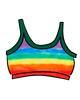 Drawing of Thunderpants Longline Bra in rainbow dye with emerald green binding.