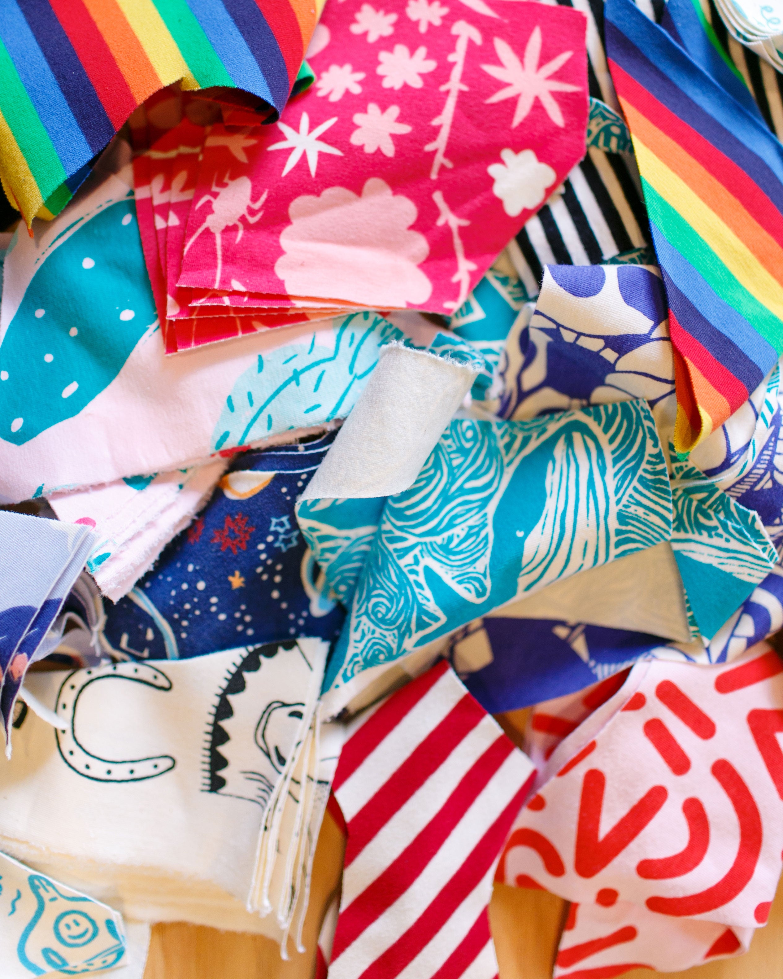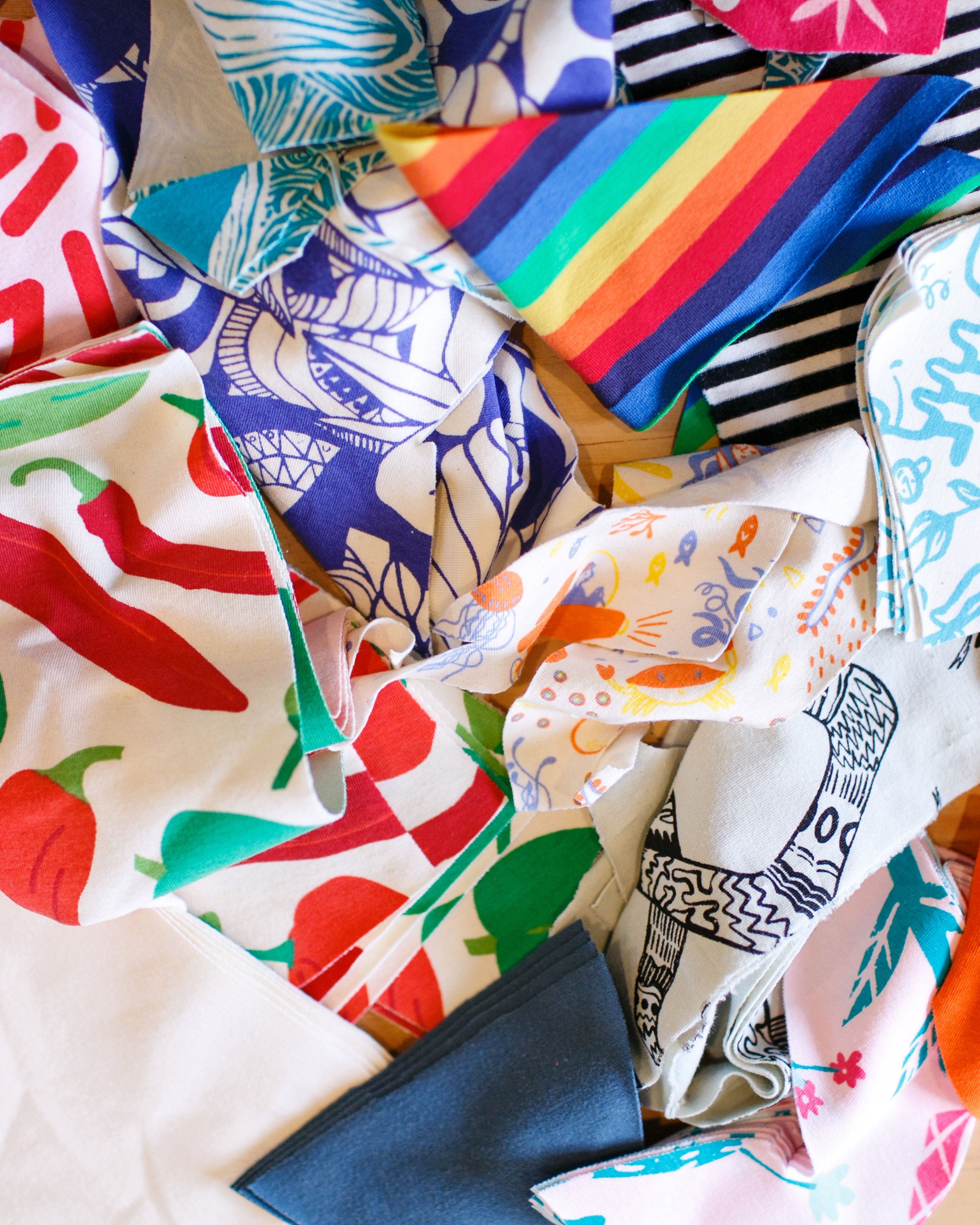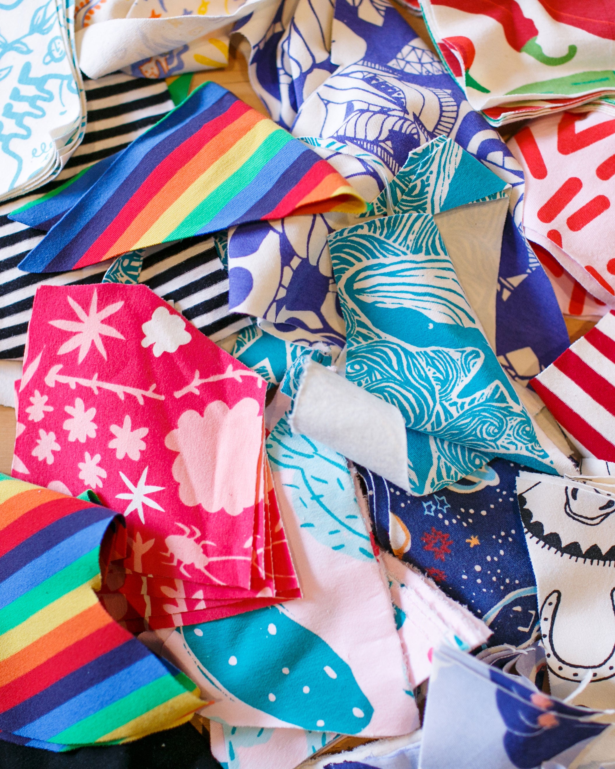 Our Organic Cotton/Spandex blend scraps that are left over from making our Scrap Panel Pants priced by the pound.